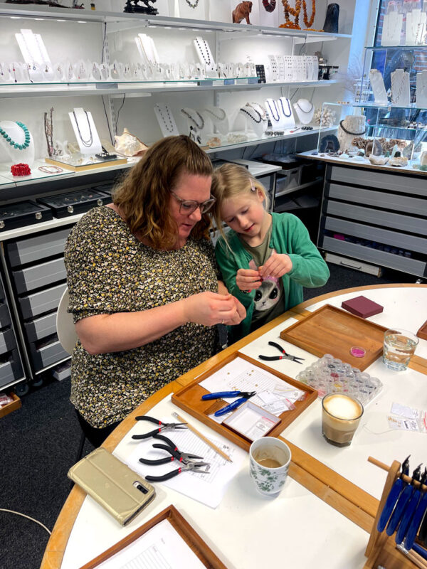 Kom ind i vores hyggelige omgivelser, og nyd en kop god varm kakao, kvalitets kaffe eller en lækker te, mens du laver dine helt egne smykker, med vores store og varierede udvalg af smykkedele.