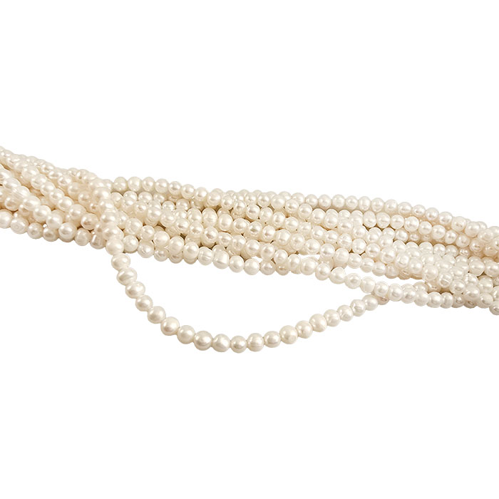 Ferskvandsperle hvid 6,5×5,5mm 1streng. Næsten rund 38cm, ca 64perler