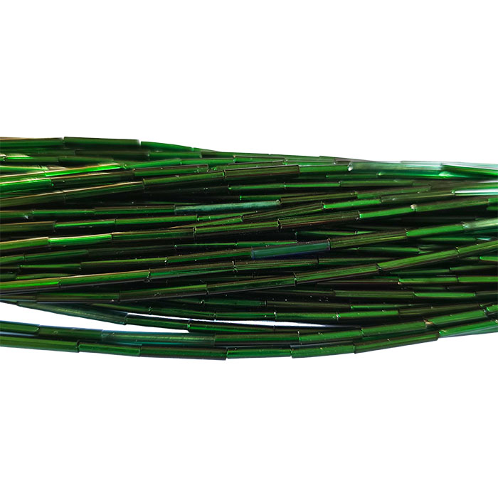 Glasperler, mørkegrønne rørperler i semi-transparent glas med en smuk, dyb farvetone og blank overflade. Den lange, slanke form giver et elegant udtryk, som skaber fine linjer og bevægelse i dit design. Rørperlerne er gennemfarvede. Det betyder, at farven ikke går af ved brug, men forbliver som den er.