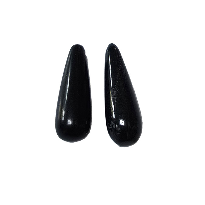 Jet-dråber fremstår i en klassisk, elegant dråbeform – slank og let afrundet forneden med en tilspidsning mod toppen. Formen er ideel til både øreringe og vedhæng.